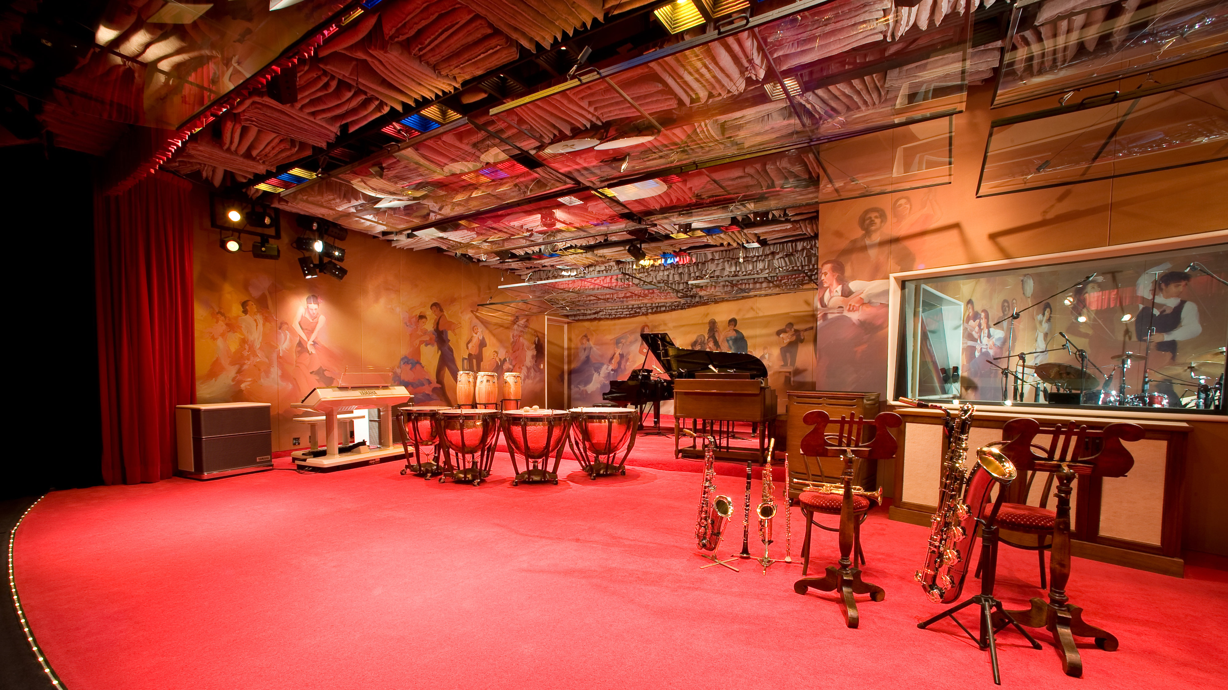 The design of the L. Ron Hubbard Music Studio simulates a concert hall, complete with audience, an atmosphere that inspires the finest creativity and performance by artists.